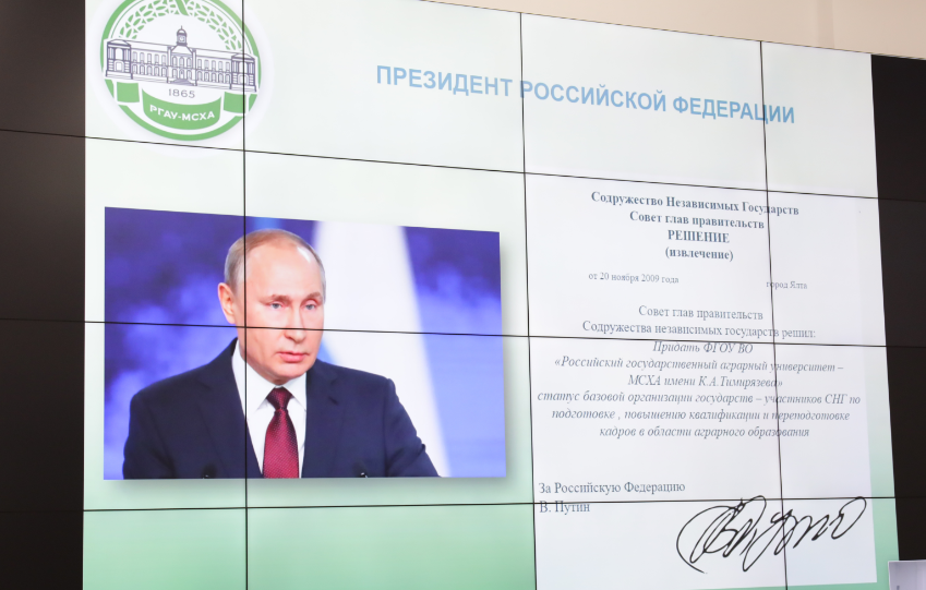 Ректор В.И. Трухачев напомнил, что более десяти лет назад Российскому государственному аграрному университету был присвоен статус базовой организации государств-участников СНГ по подготовке, повышению квалификации и переподготовке кадров в области аграрного образования. Таким образом, активное научно-образовательное взаимодействие и кооперация с вузами Содружества независимых государств – одна из ключевых задач развития Тимирязевской академии.