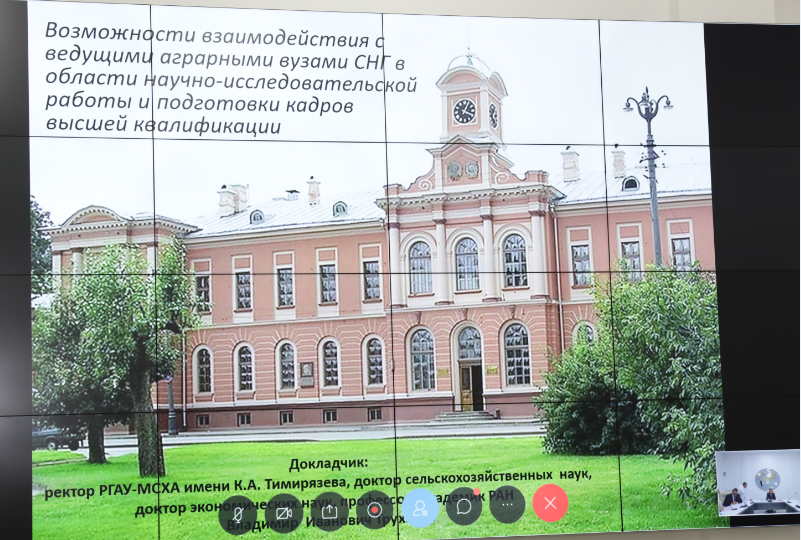 В рамках онлайн-заседания ректор Тимирязевской академии, Академик РАН, профессор Владимир Иванович Трухачев представил доклад на тему «Возможности взаимодействия РГАУ-МСХА имени К.А. Тимирязева с ведущими аграрными вузами СНГ по научным исследованиям и подготовки кадров высшей квалификации».