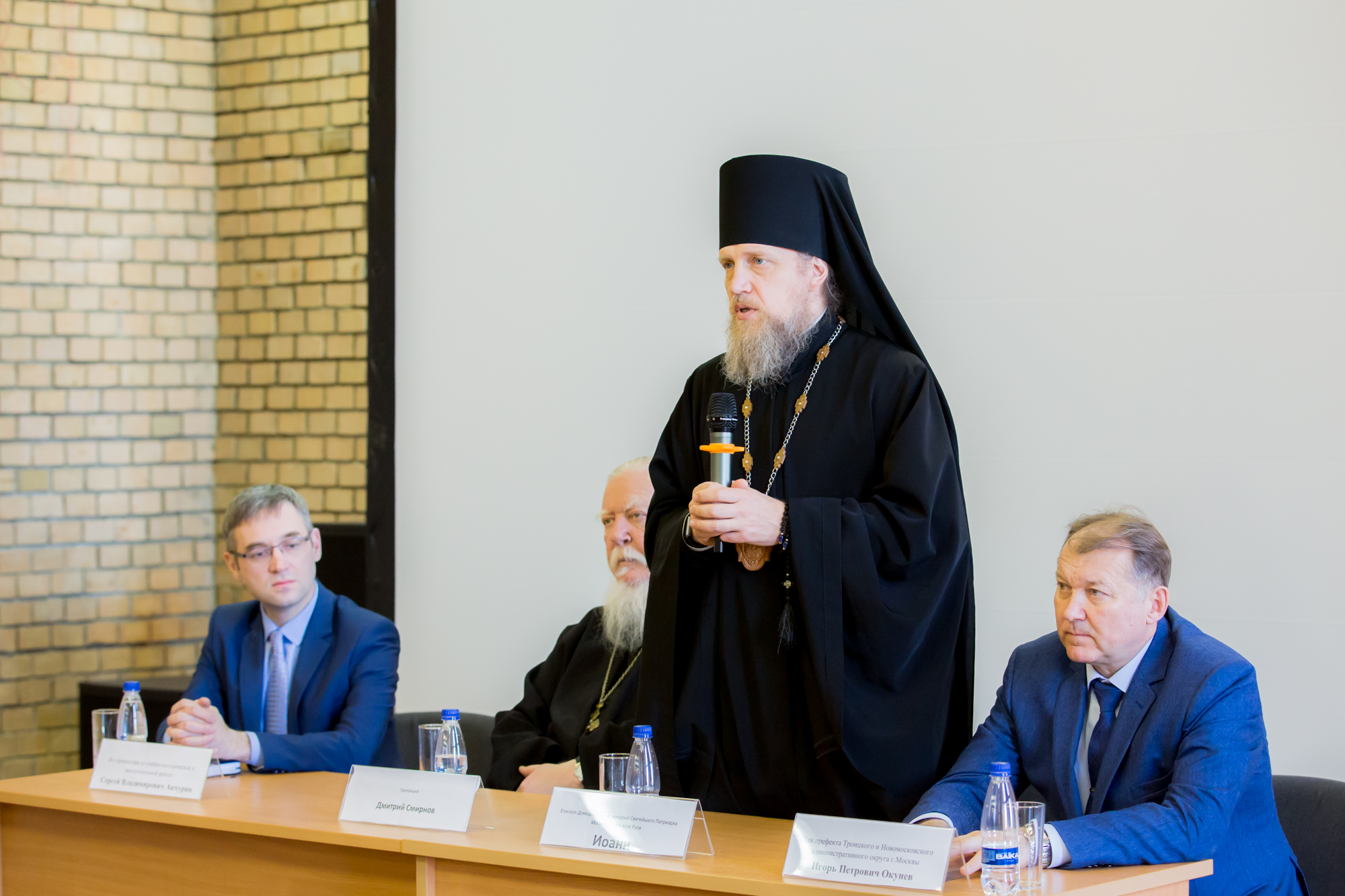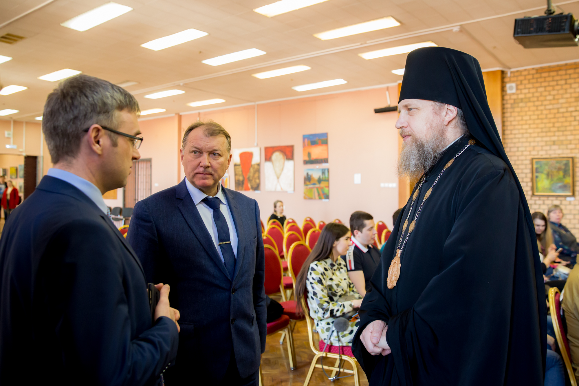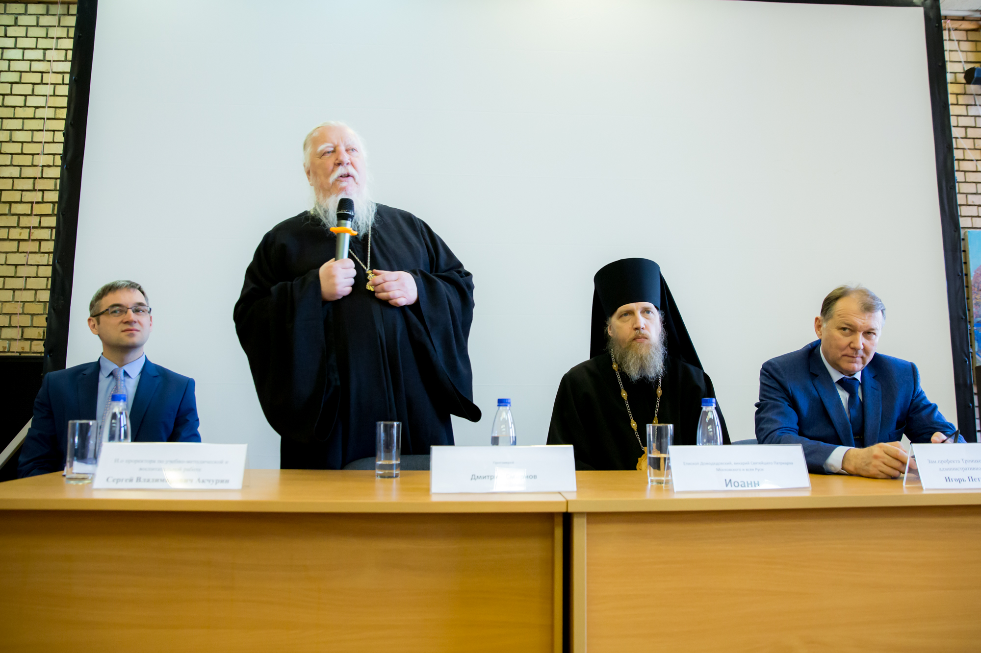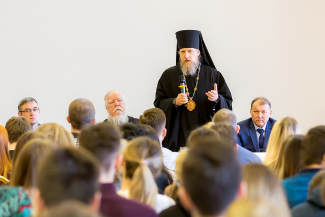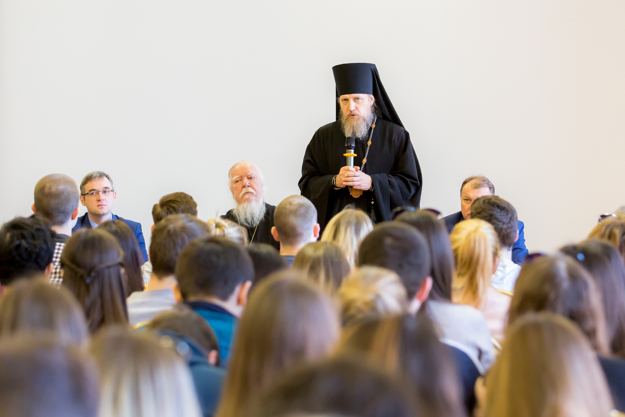 В рамках визита в Тимирязевку епископ Иоанн встретился со студентами университета. Помимо самого владыки, во встрече приняли участие и.о. проректора по учебно-методической и воспитательной работе Сергей Акчурин, протоирей Дмитрий (Смирнов) и заместитель префекта Троицкого и Новомосковского административных округов города Москвы Игорь Окунев.