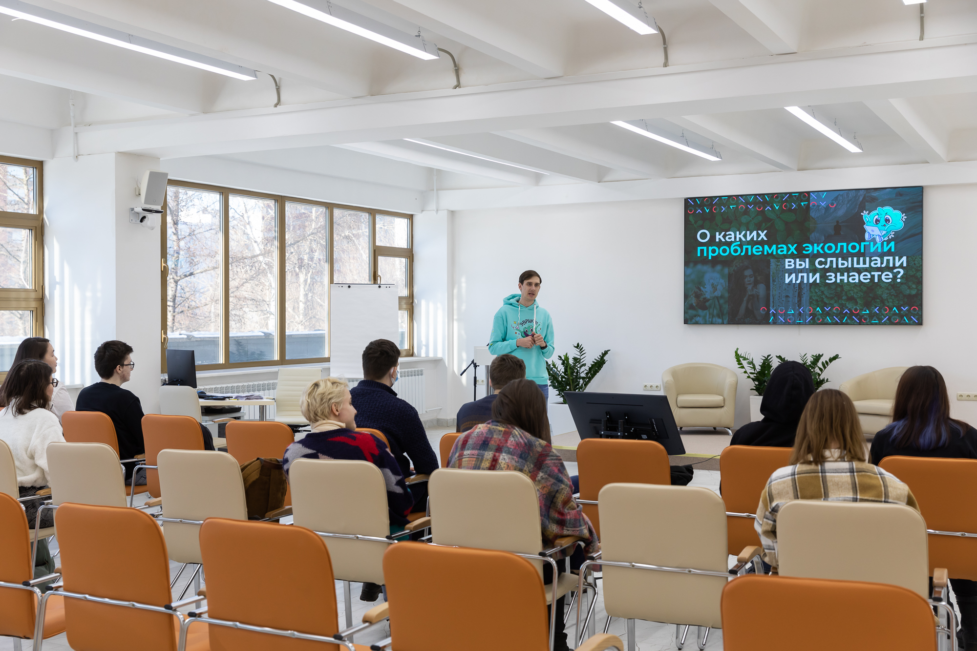 По окончании общей части презентации работа продолжилась на тематических площадках по экологическому мышлению, написанию резюме, искусству презентации и поиску любимого дела.