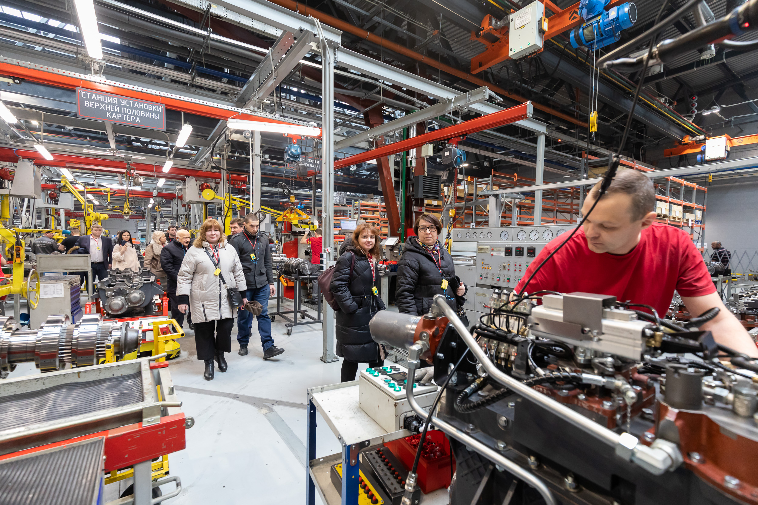 Представители Тимирязевской академии и Росагролизинга познакомились с производством коробок перемены передач, побывали в сварочном цеху. Кульминацией экскурсии стало знакомство с конвейерной линией по сборке энергонасыщенных тракторов «КИРОВЕЦ» различных моделей.