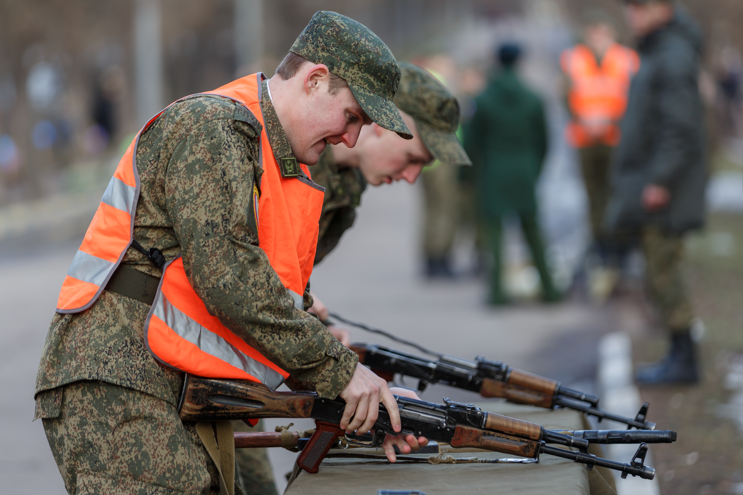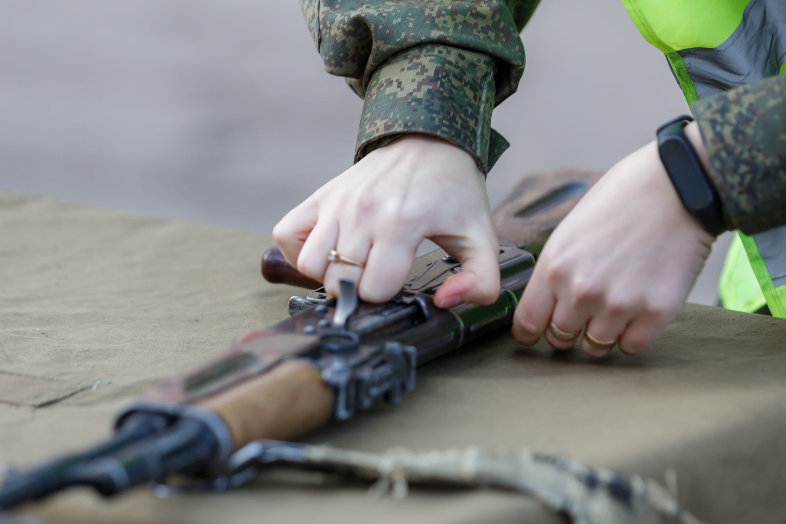 На втором рубеже студенты выполняли норматив по сборке автомата.