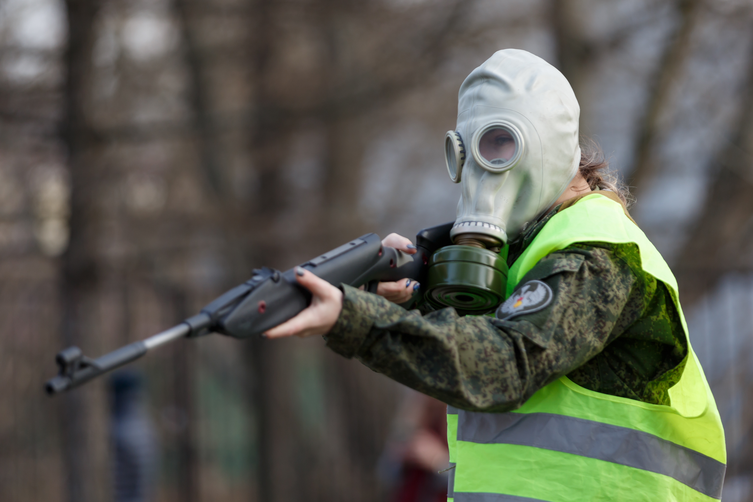 Задачей третьего рубежа было выполнение норматива по надеванию противогаза на скорость и поражение мишени в противогазе.