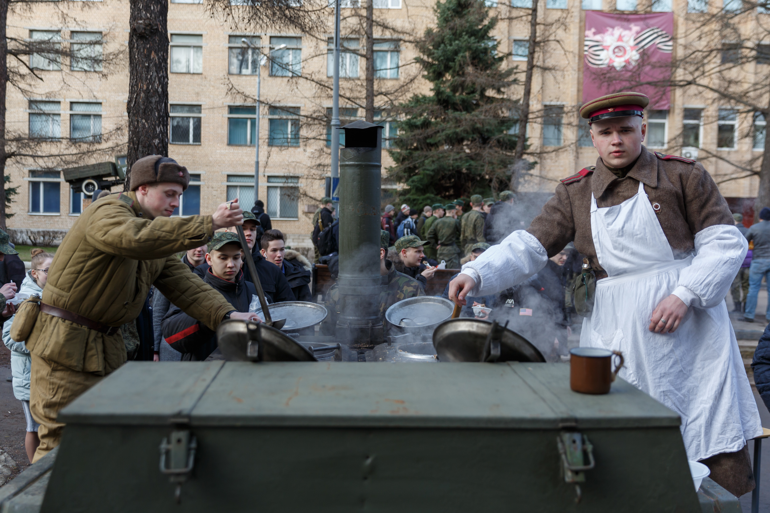 Гости и участники спортивного праздника угощались солдатской кашей на полевой кухне, организованной комбинатом общественного питания РГАУ-МСХА.