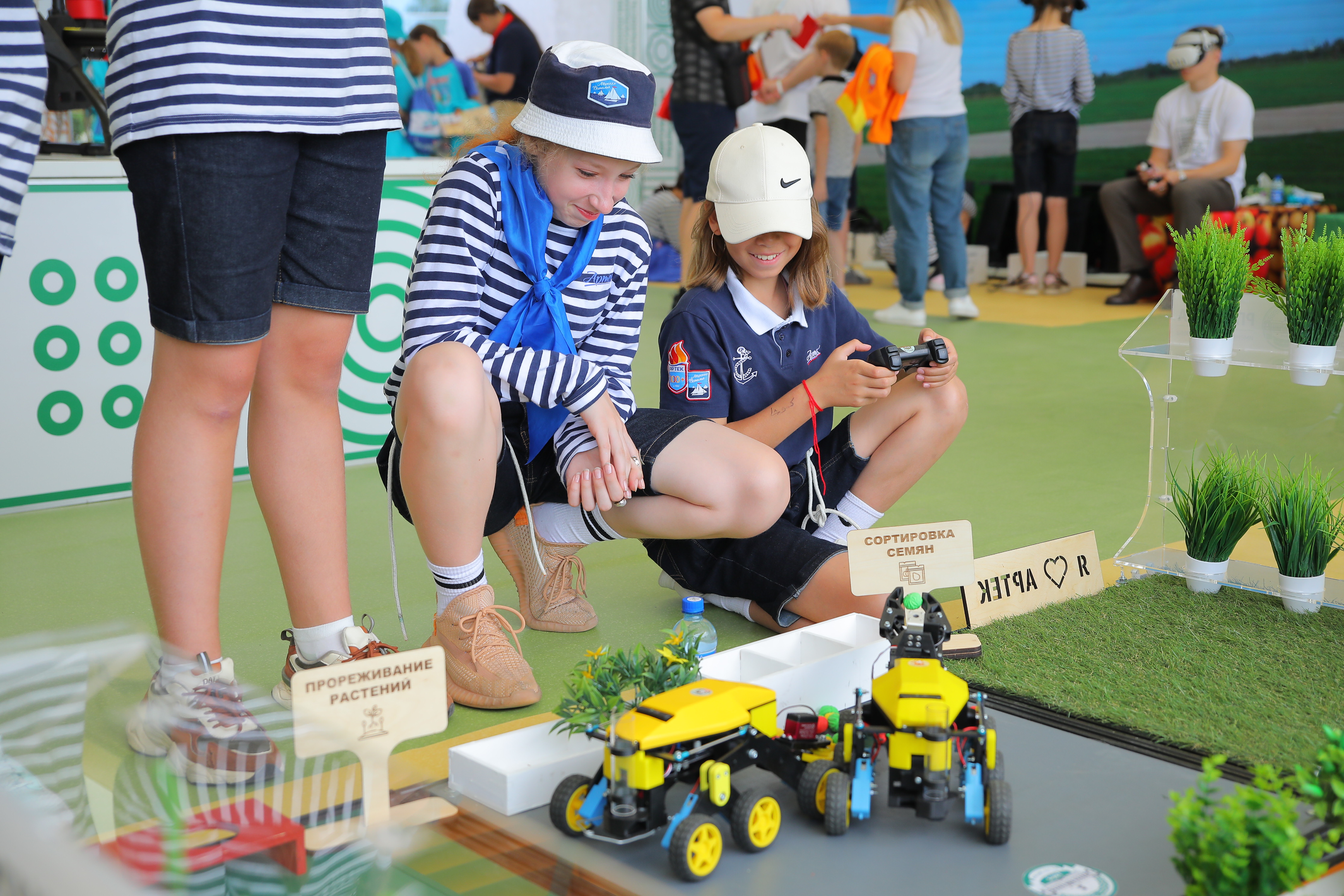 Тимирязевская академия познакомила артековцев с роботами, которые помогают работать в закрытом грунте. В рамках мастер-класса ребята, управляя мобильным роботом, осуществляли различные операции: проводили сортировку семян, сбор урожая, пересадку растений и др.