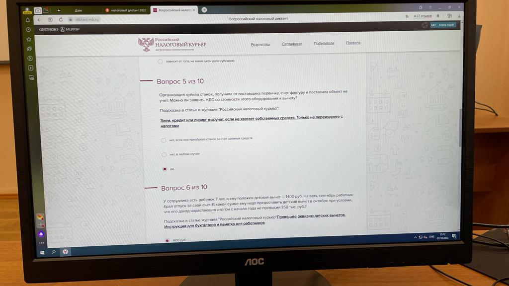 Диктант включал вопросы разных уровней сложности: легкий, средний и профессиональный. Каждый блок тестирования состоял из десяти вопросов, учитывающих нововведения, судебную и разъяснительную практику применения налоговых ставок, льгот, определения налогооблагаемых баз, отчетности по налогу на прибыль организаций, НДС, НДФЛ, страховым взносам и другим корпоративным налогам.
