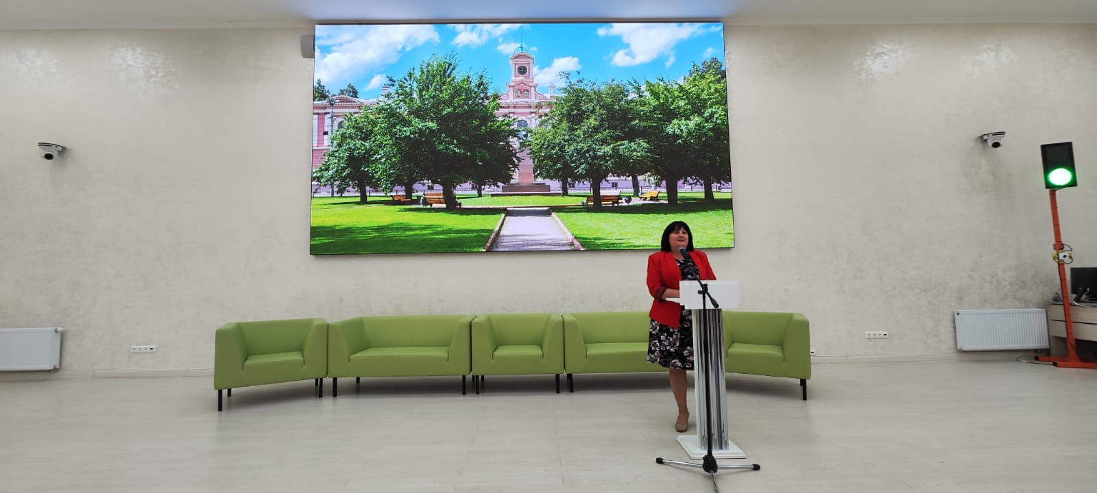 Далее выступила к.с.-х.н., старший научный сотрудник, заведующая лабораторией инновационных агромелиоративных технологий Меньшикова Снежана Александровна. Свое выступление она посветила истории института, его структуре, отделам и ведущим ученым. Также было уделено внимание роли молодых специалистов в деятельности научно-исследовательского института и функционирующему в нем совету молодых ученых.
