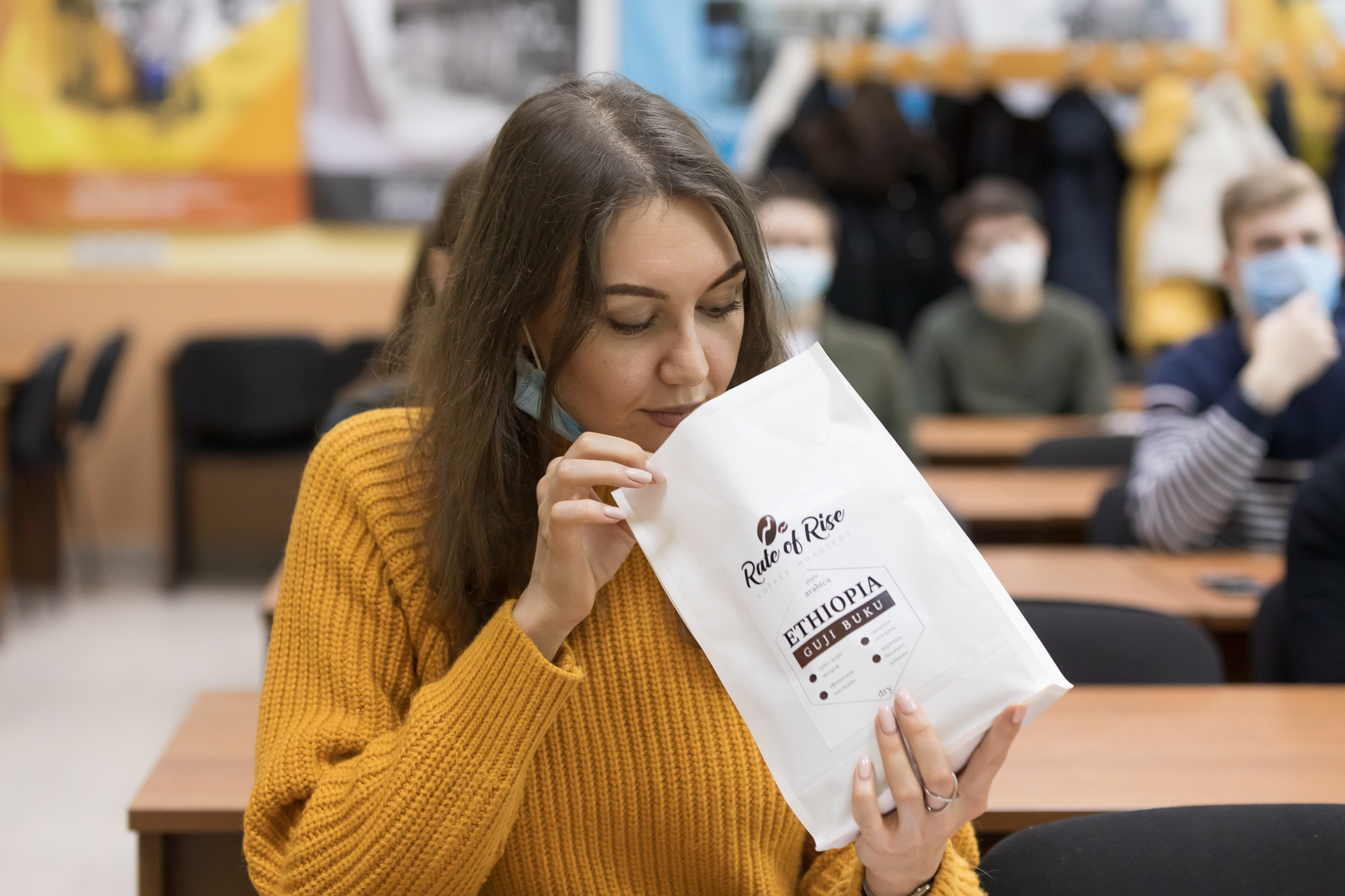 Екатерина поделилась со студентами историей ее знакомства с кофе, как с продуктом, о котором при поступлении в университет она знала меньше всего. Была раскрыта главная тема встречи: стажировка в Федеральном Институте Эспириту-Санта (Universidade Federal do Espírito Santo), с которым наш Университет имеет договор академического сотрудничества на ближайшие 5 лет. Екатерина рассказала, как проходила ее стажировка в Бразилии, с какими проблемами она столкнулась, и какой опыт извлекла из этой поездки. Она акцентировала внимание студентов на том, что если есть желание заниматься исследованиями или открывать что-то новое, то для этого сфера производства кофе подойдет как нельзя лучше. Например, на данный момент остается мало изученным кофе вида Робуста для более широкого потребления, ведь 70% рынка кофе основано на реализации Арабики, которая исследована уже очень хорошо.