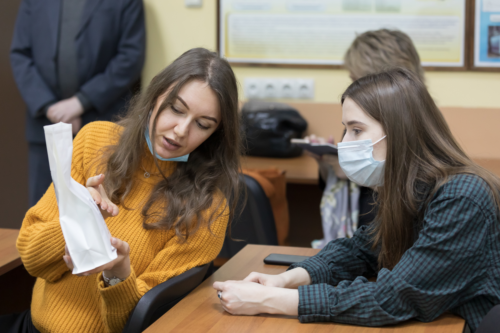 На встрече также присутствовали также и.о. декана технологического факультета Сергей Алексеевич Бредихин, заместитель декана Эльмира Исламовна Черкасова, старший преподаватель Марина Евгеньевна Замятина. Ранее Марина Евгеньевна вместе со студенткой 304 группы Лодыгиной Анастасией уже сотрудничали с Екатериной Мутовкиной во время подготовки к студенческой конференции, а сейчас это сотрудничество продолжается в новом ключе.