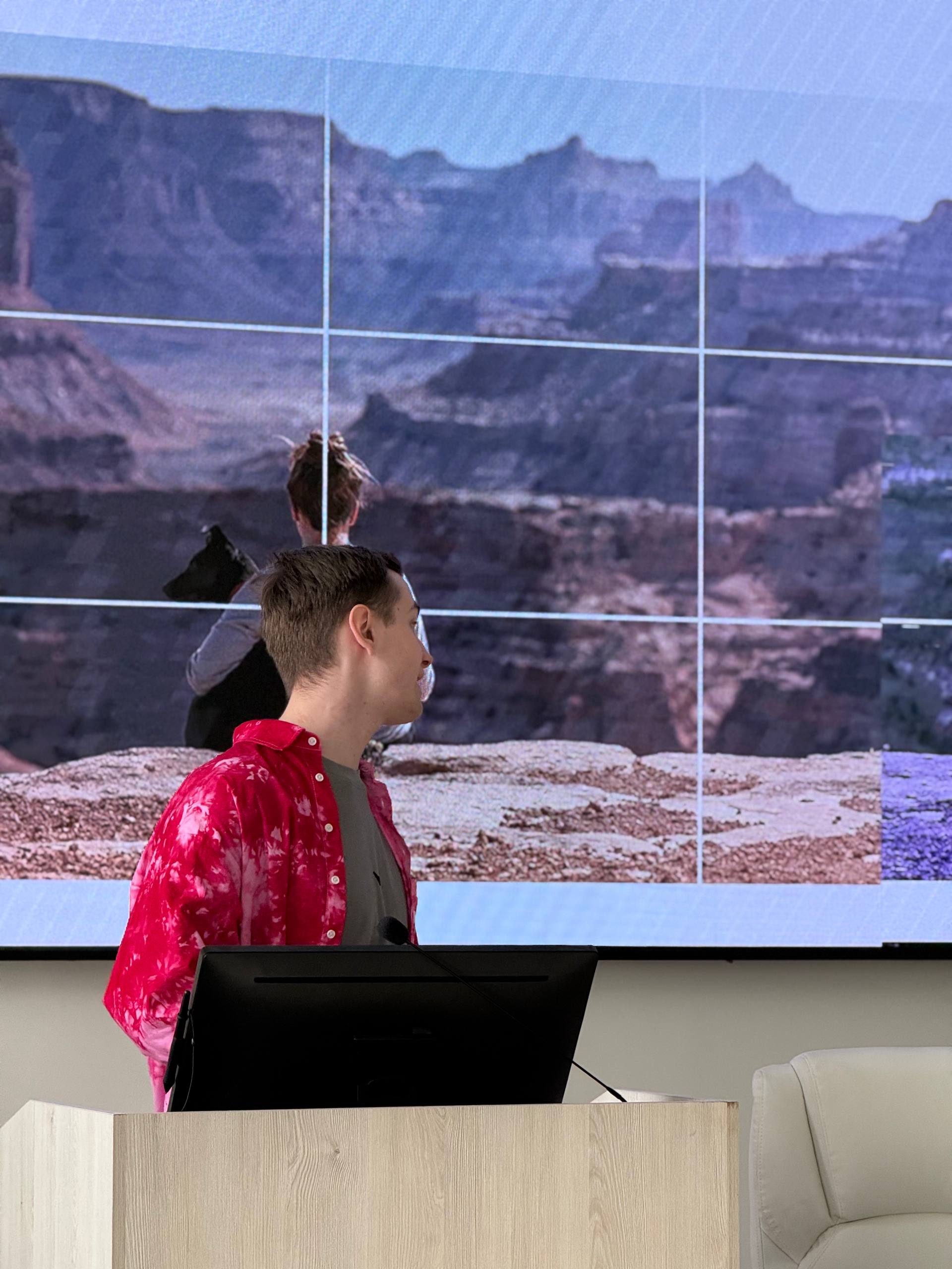На следующий день прошла практическая сессия по фотосъёмке с участием Чуприна Евгения (ЧПЛ). Студенты отработали навыки построения кадра, съемки репортажных и событийных фото для новостных материалов и социальных сетей, обсудили технические и творческие аспекты визуального сопровождения PR‑коммуникаций.