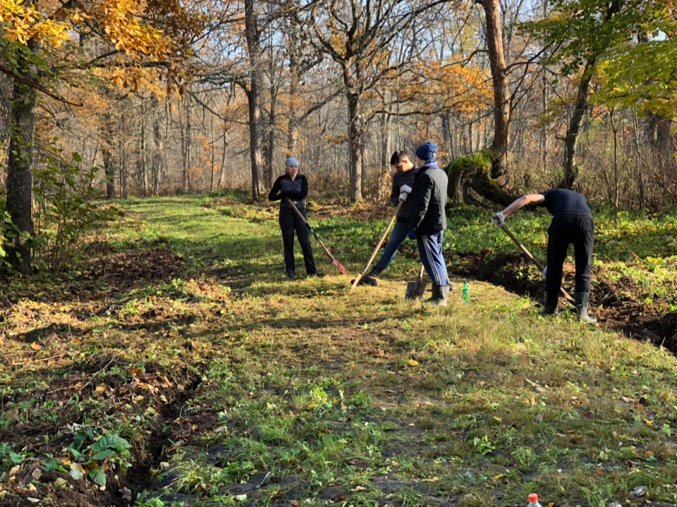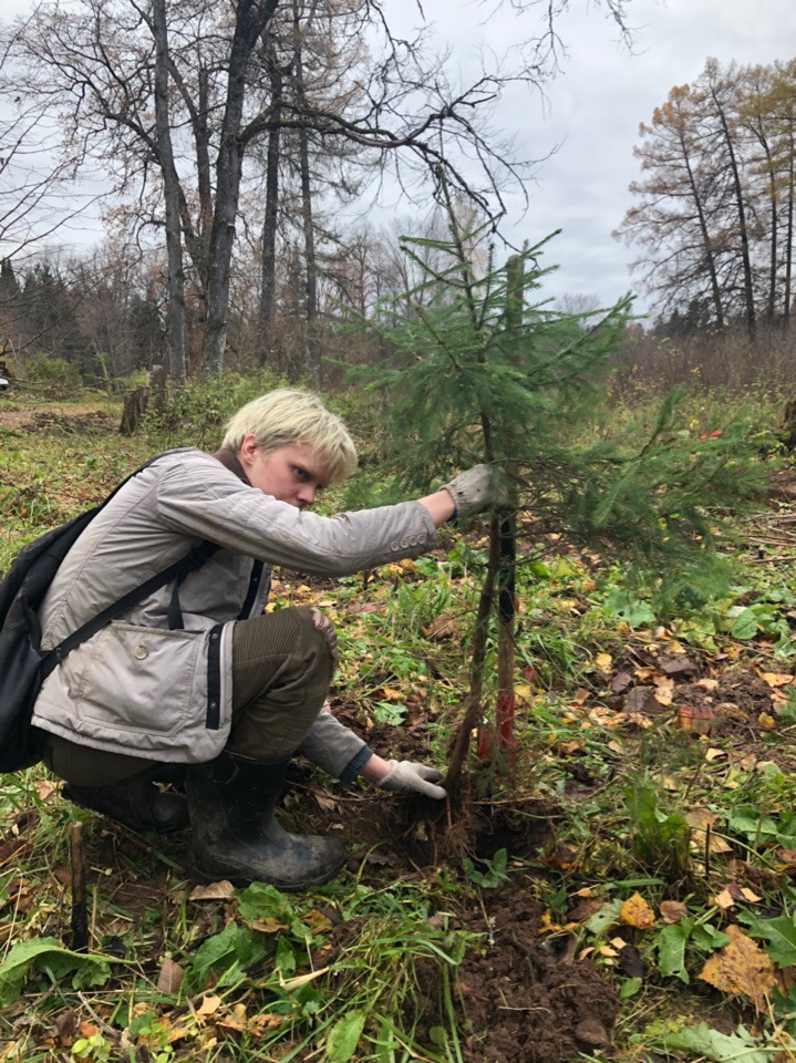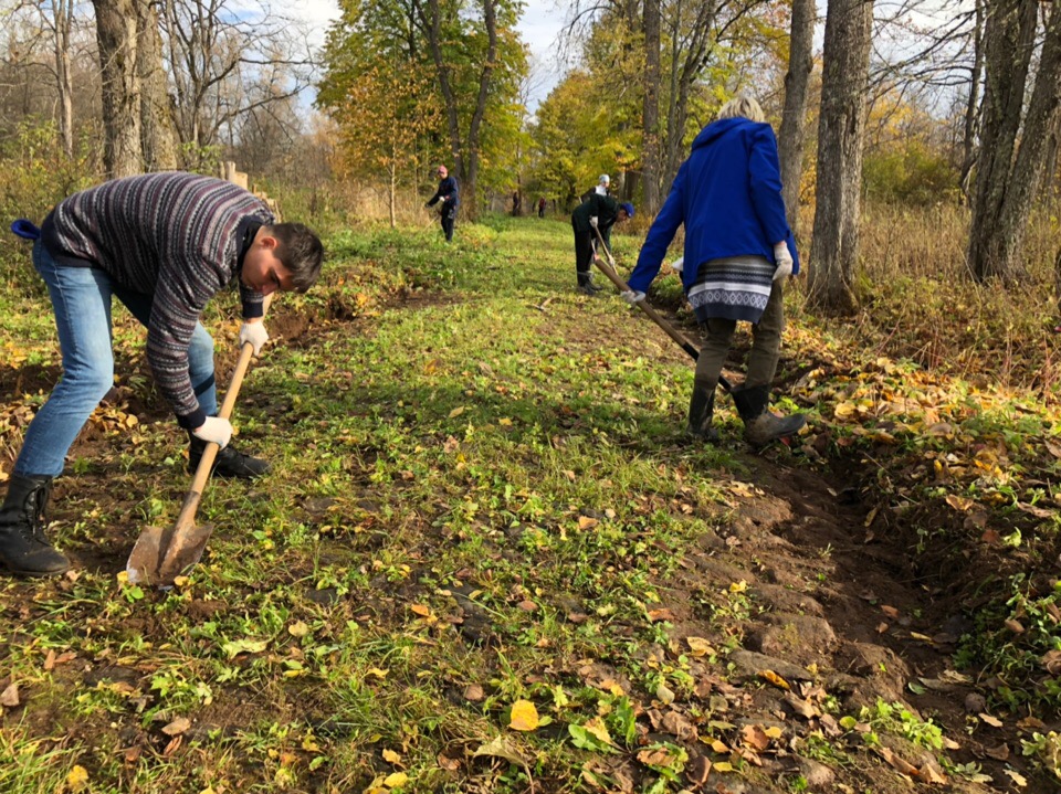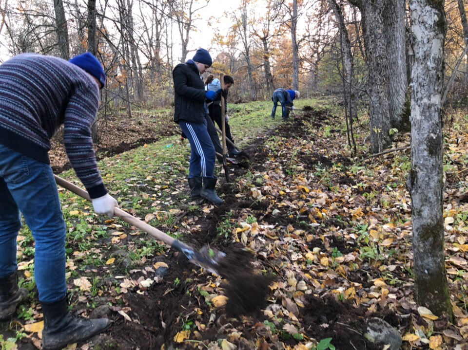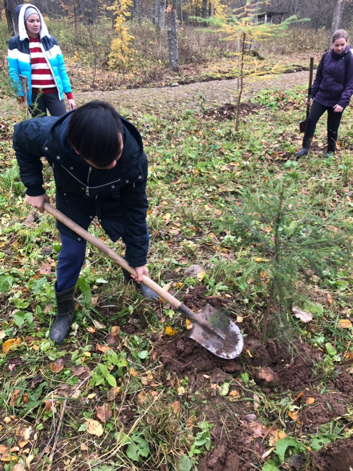На протяжении 14 лет тимирязевские волонтеры проводят рекреационные работы по сохранению памятника историко-культурного значения в урочище Матвейково. Бойцы эколого-патриотического отряда восстанавливают былой облик лесопарка и благоустраивают место захоронения семьи Железновых. Главной целью прошедшего выезда стала высадка саженцев деревьев вдоль центральной аллеи усадьбы.
