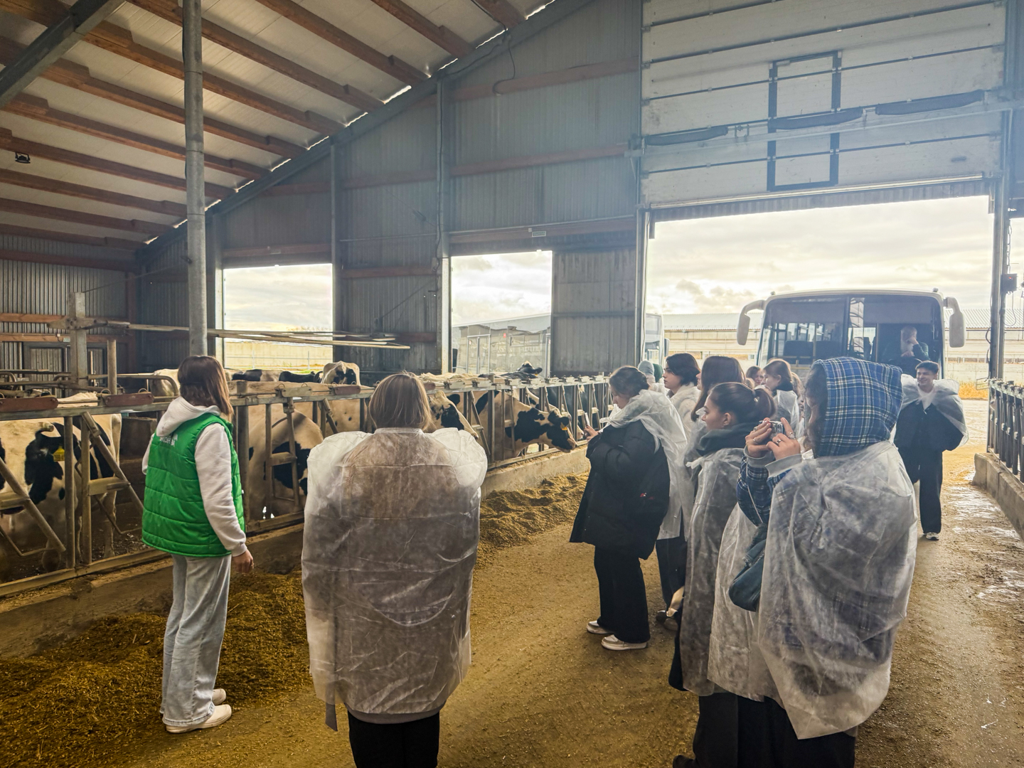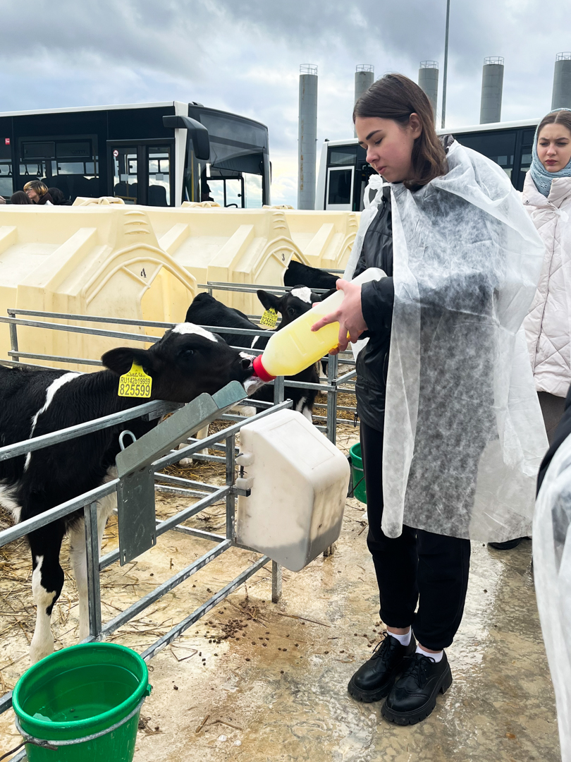 В ходе посещения фермы студенты узнали множество нюансов. Были продемонстрированы инновационные системы вентиляции, освещения, комфортные стойла и зоны отдыха, обеспечивающие животным оптимальные условия. Студенты ознакомились с использованием цифровых технологий для мониторинга здоровья каждой особи, контроля за её кормлением и продуктивностью. Это включает автоматизированные системы идентификации животных и сбора данных. Были представлены принципы составления сбалансированных рационов, учитывающих потребности разных групп животных, а также современные технологии заготовки и хранения кормов. Участники экскурсии увидели в работе роботизированные доильные установки и современные доильные залы, позволяющие максимально автоматизировать процесс доения, обеспечивая его гигиеничность и снижая стресс для животных.