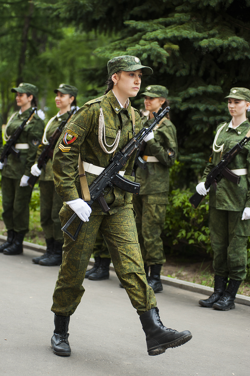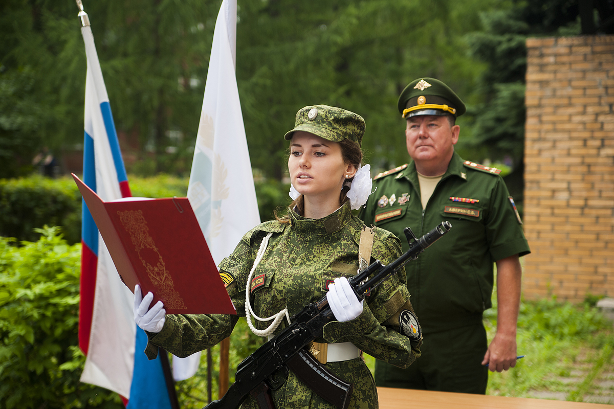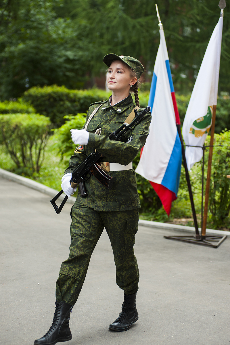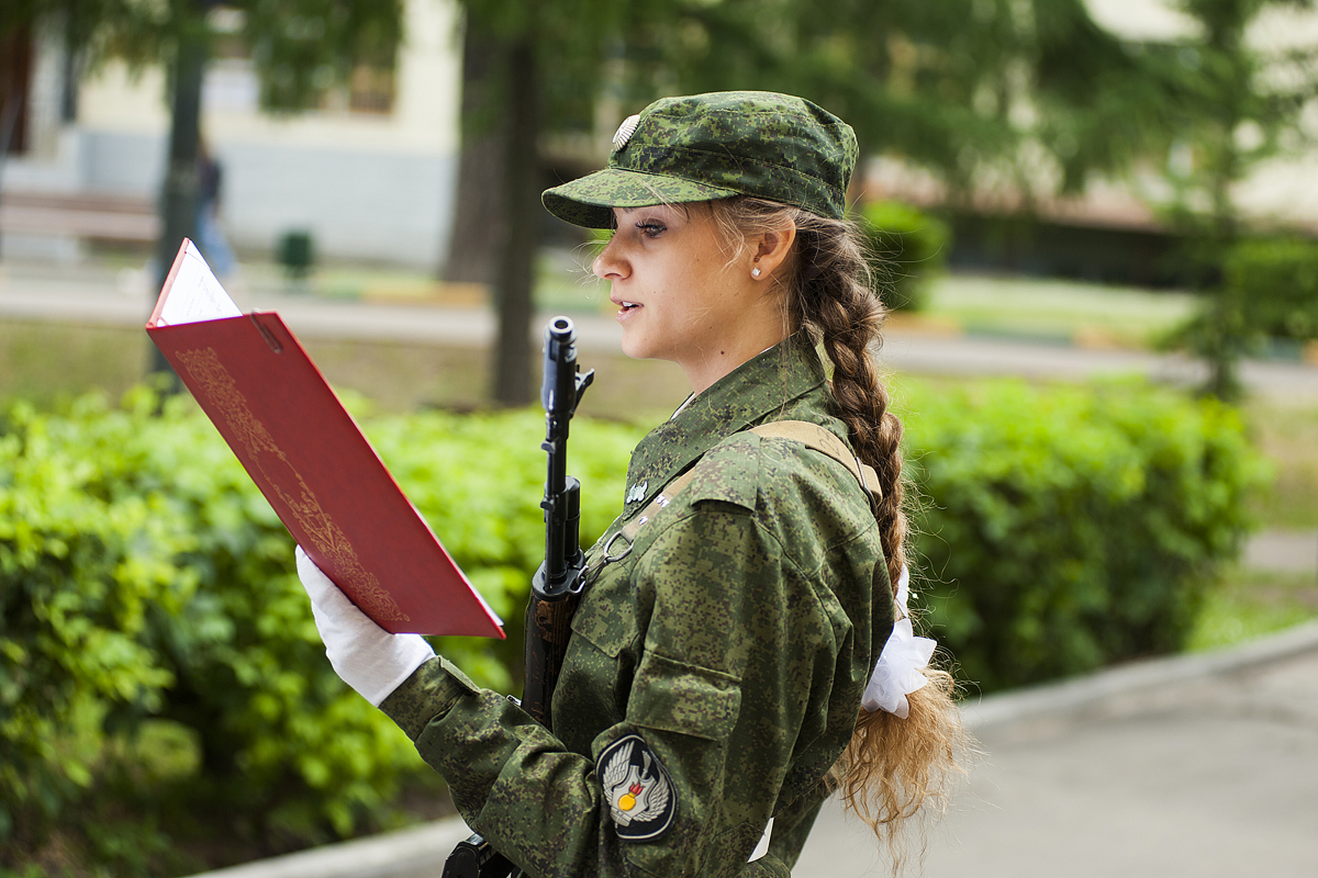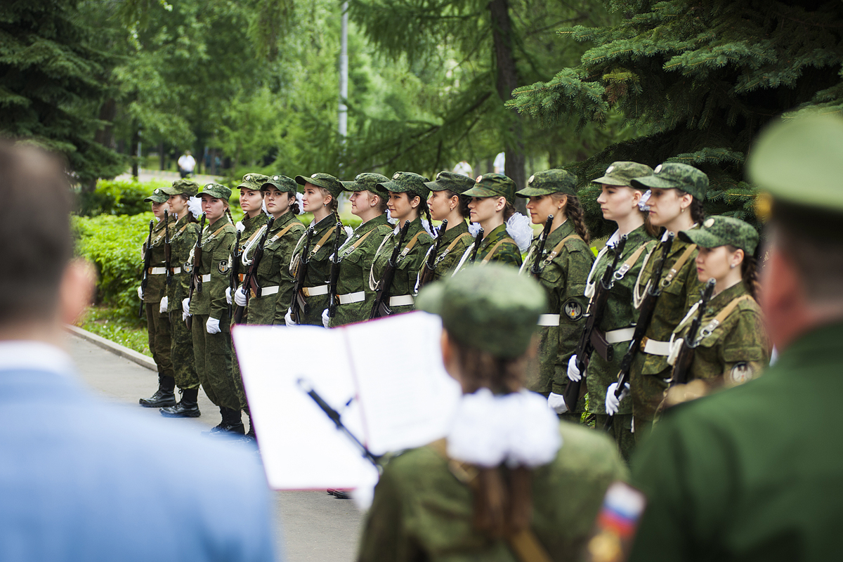 30 Июнь / 2018Красивое внешне и глубоко символичное действо привлекло внимание студентов, абитуриентов и просто прохожих. Девушки в военной форме с оружием в руках присягали на верность российской армии. И никаких поблажек от военного начальства: строгая выправка, резкие команды и беспрекословное выполнение.