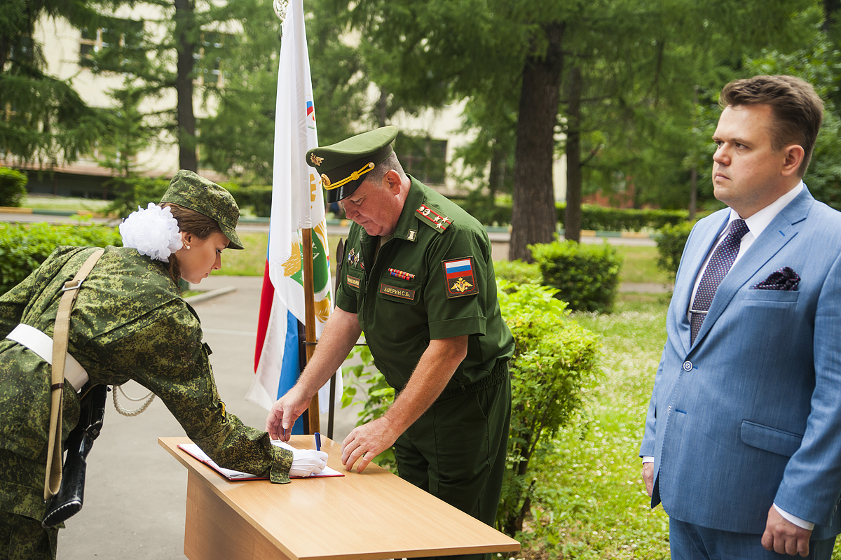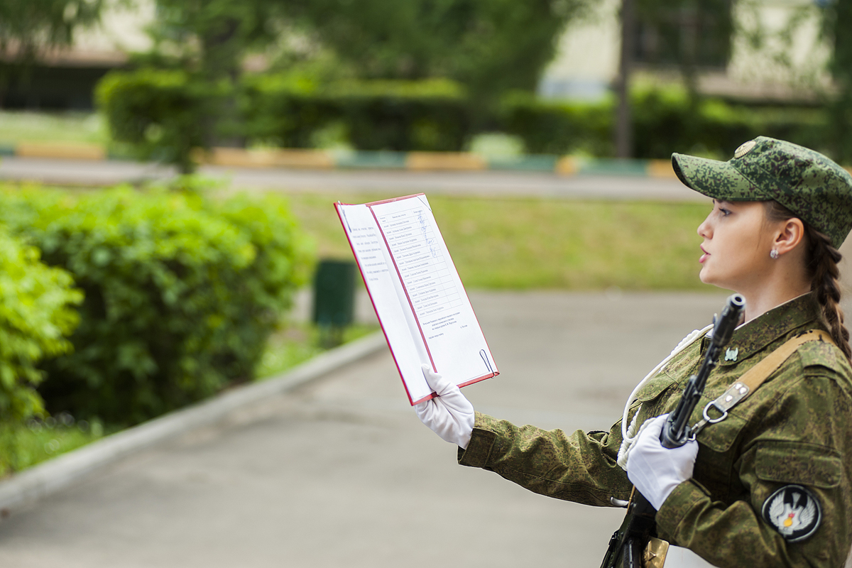 К присяге выпускниц приводил начальник учебной части, полковник Сергей Аверин. Девушки произносили клятву и с этого торжественного момента пополняли ряды Вооруженных сил РФ.