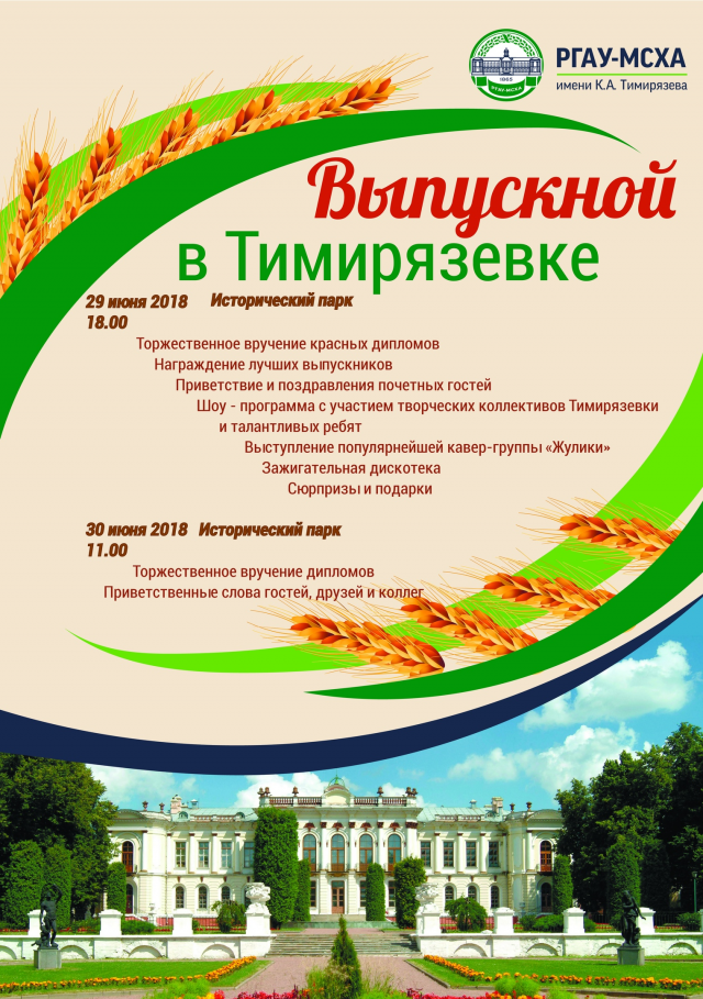 Руководство Тимирязевки делает все возможное, чтобы праздничные события запомнились навсегда, а студенты с гордостью вспоминали о Выпускном-2018 в главном аграрном!