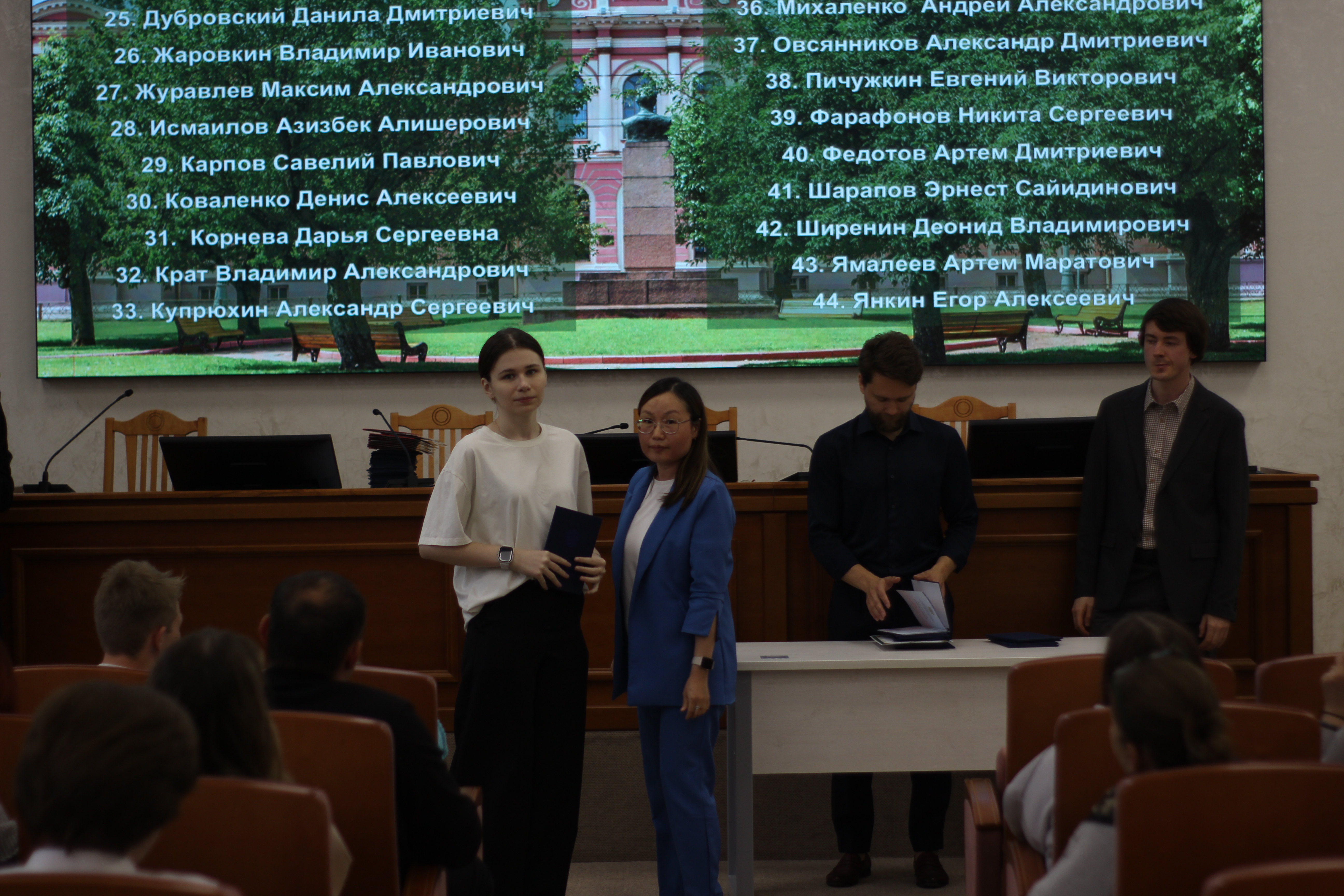 30 Июнь / 2025Кафедры статистики и кибернетики, прикладной информатики, экономической безопасности и права совместно организовали торжественное мероприятие, посвящённое вручению дипломов по направлениям подготовки «Информационные системы и технологии», «Прикладная информатика» и специальности «Экономическая безопасность». Атмосфера мероприятия была проникнута духом торжественности и оптимизма в отношении будущих карьер наших выпускников!