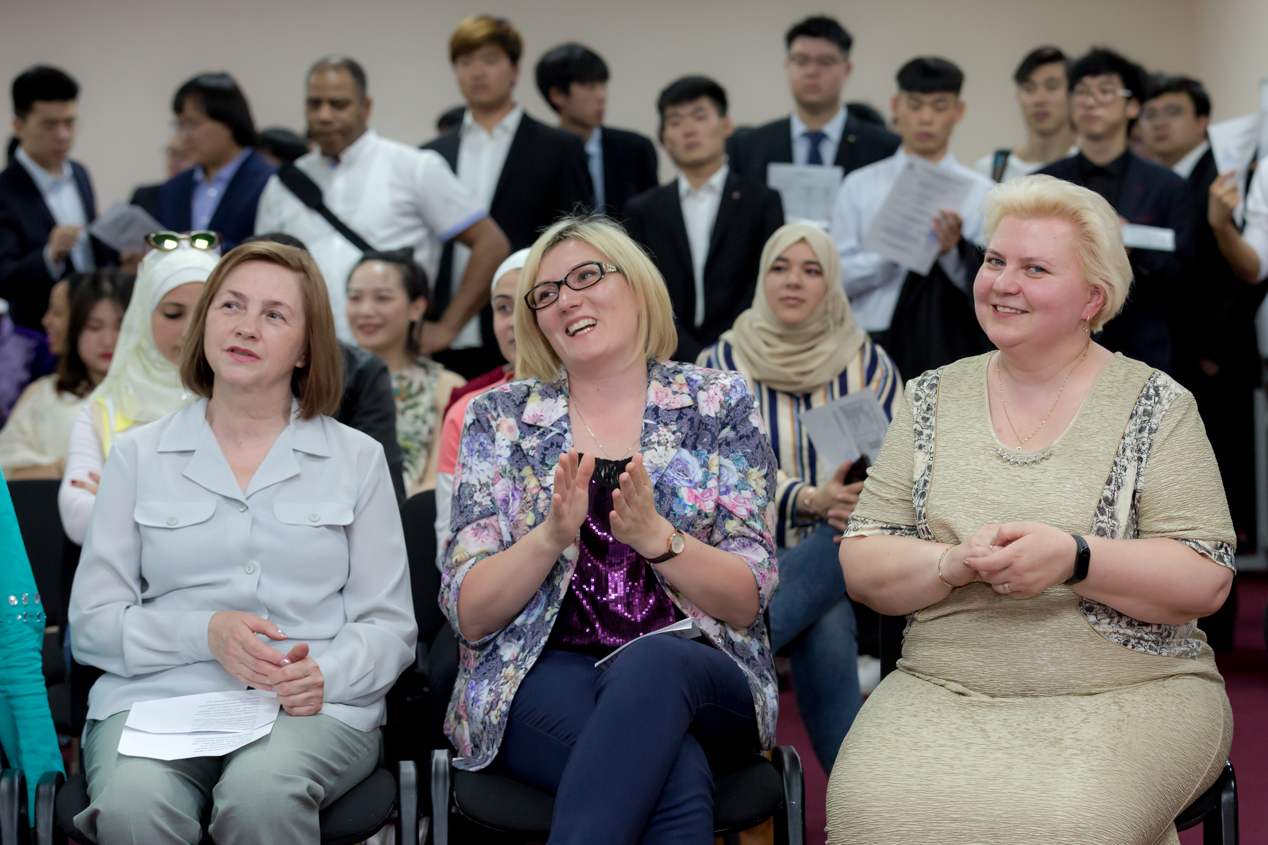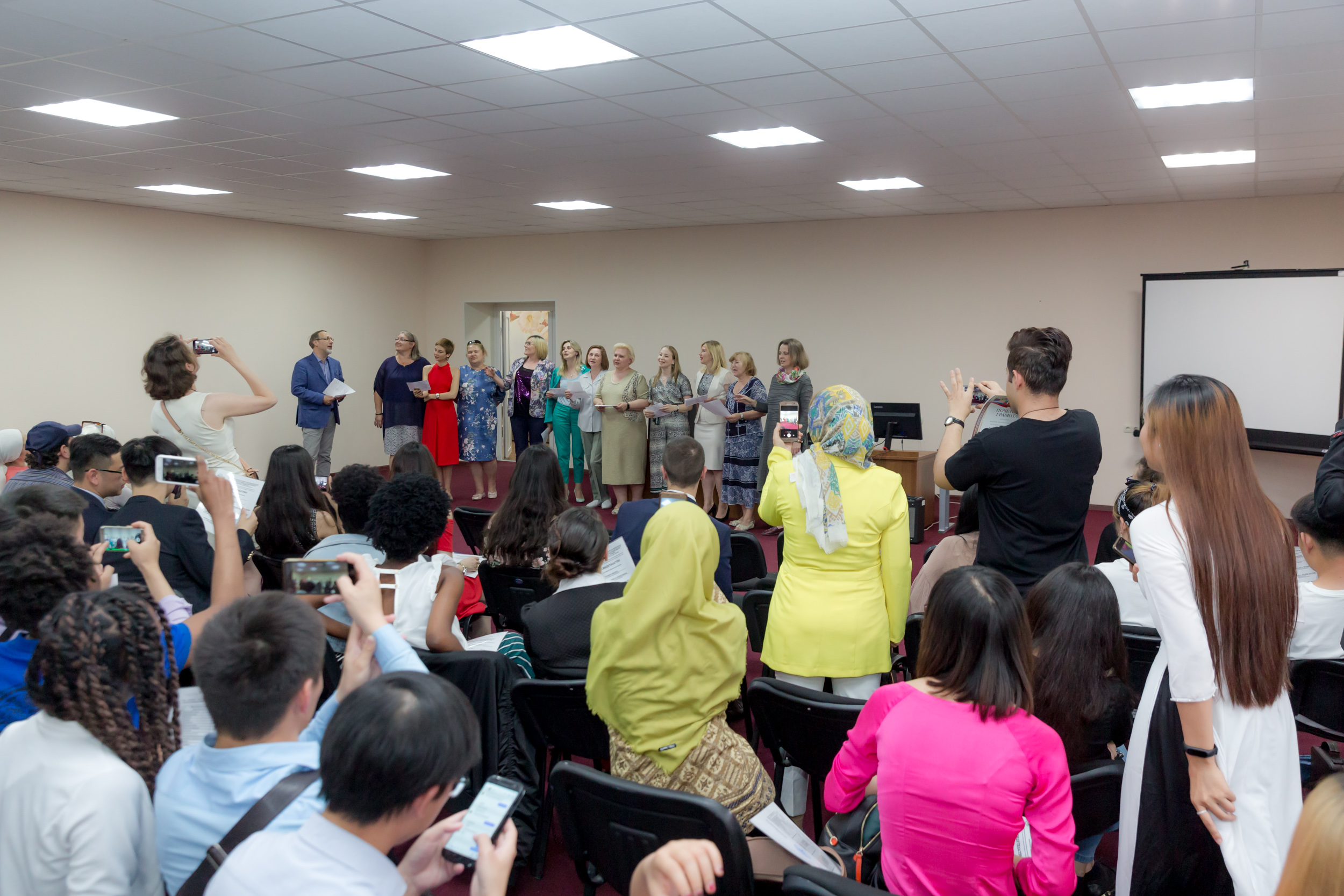 В подарок своим преподавателям выпускники из Вьетнама, Китая и африканских государств подготовили музыкальные номера. В ответ педагоги исполнили для своих подопечных песню «Прощальный вальс».