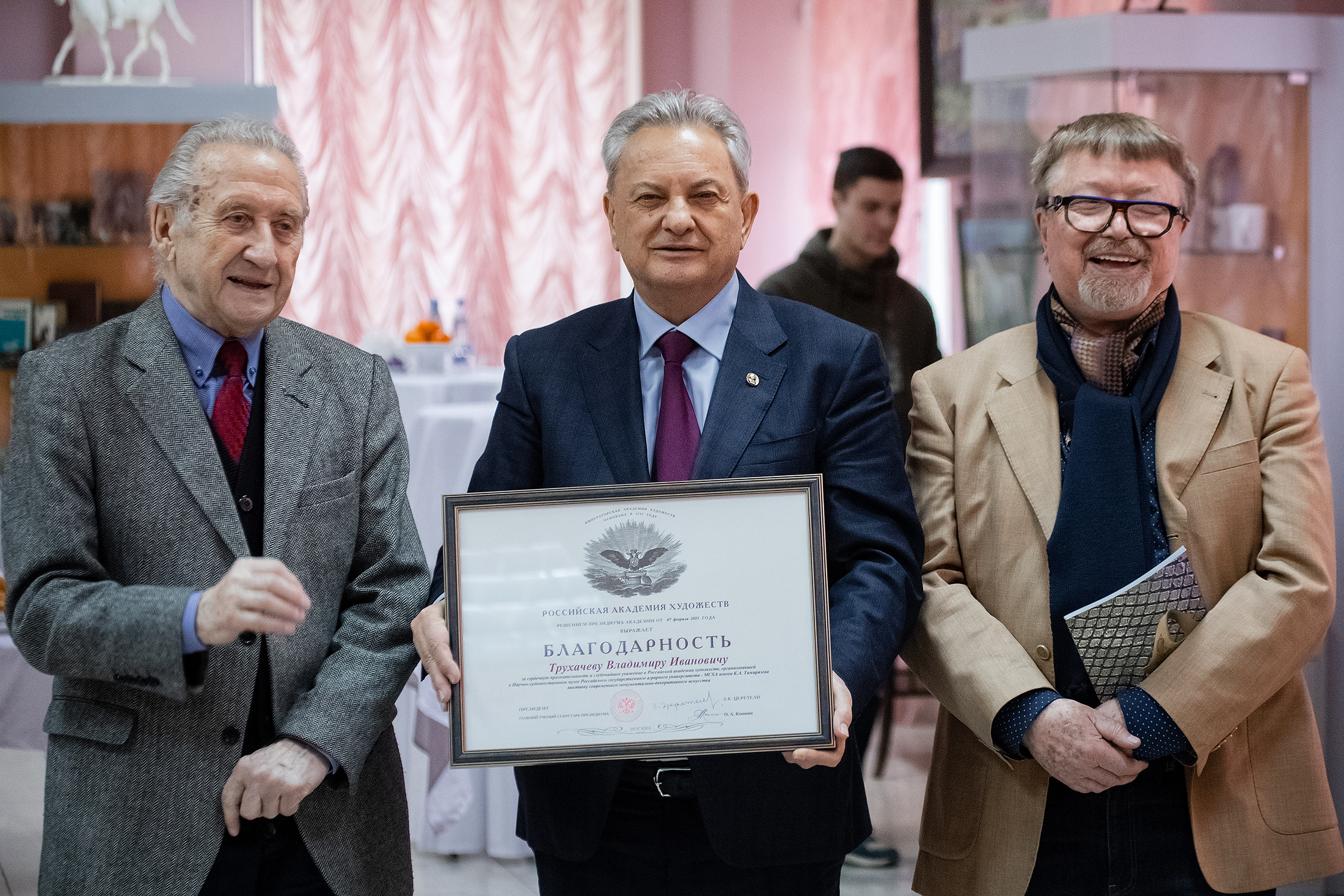 Добрые слова в адрес автора экспозиции сказал главный ученый секретарь Президиума Российской академии художеств, Академик РАХ Олег Александрович Кошкин. Почетный гость вуза вручил Благодарность ректору В.И. Трухачеву «за сердечную признательность и глубочайшее уважение к Российской академии художеств, организовавшей в Научно-художественном музее коневодства РГАУ-МСХА имени К.А. Тимирязева выставку современного монументально-декоративного искусства». Награда подписана Президентом Российской академии художеств З.К. Церетели.