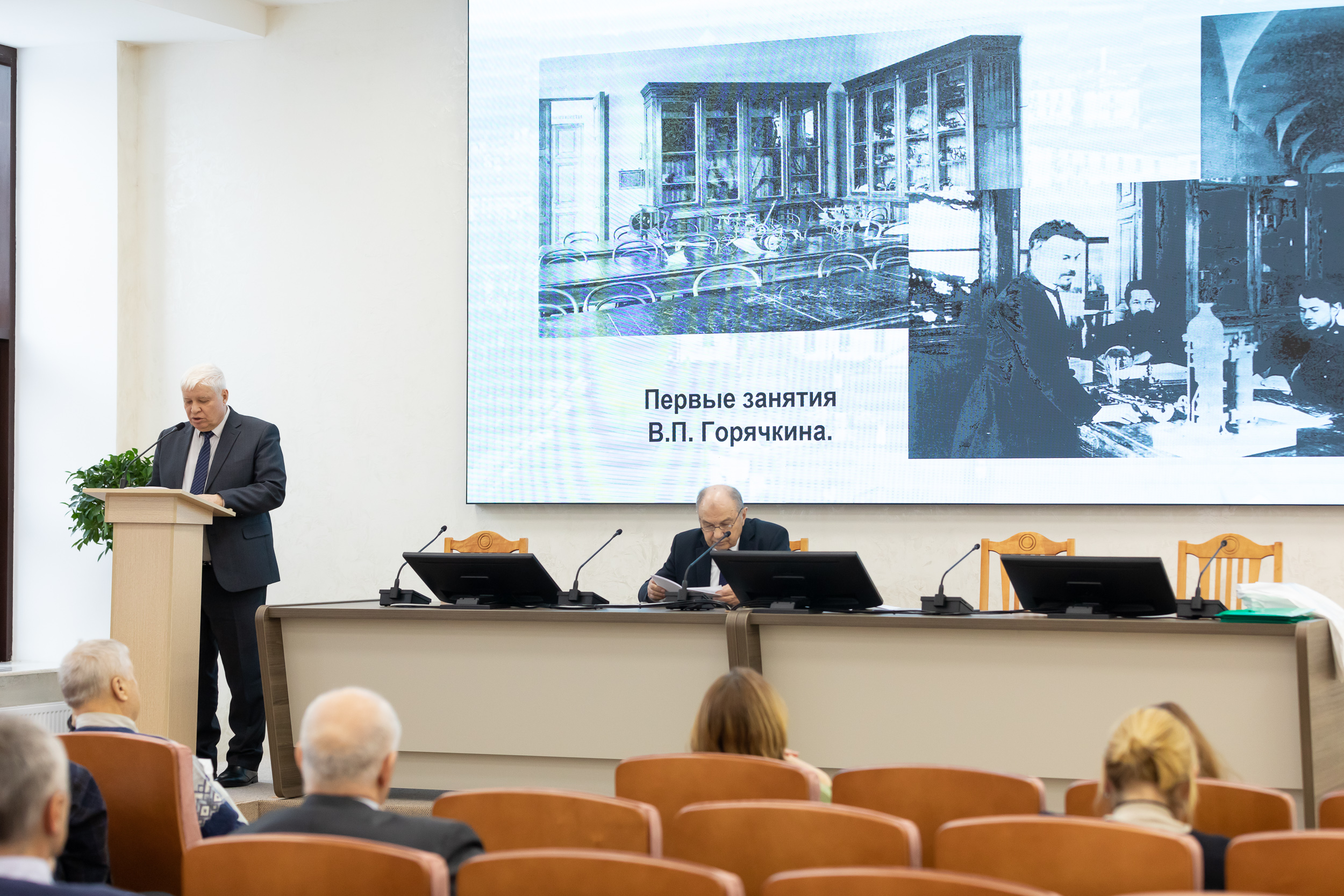 Выставка повествует о выдающихся ученых кафедры: В.А. Желиговском, Н.Д. Лучинском, В.Н. Болтинском, И.И. Артоболевском, В.П. Селезнева, Н.И. Клёмине, В.А. Сакуне, В.М. Халанском, И.В. Горбачеве и др. Отдельно отмечен вклад Василия Прохоровича Горячкина в развитие земледельческой механики. Выдающийся ученый был первым заведующим кафедрой и возглавлял ее с 1901 по 1934 годы.