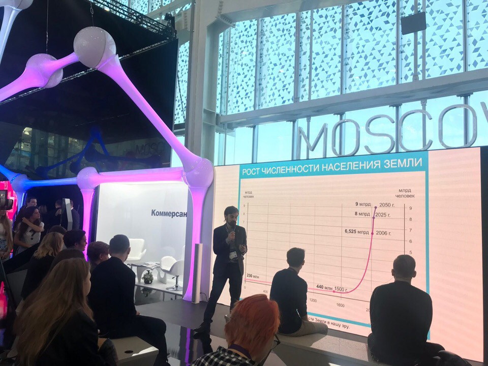 В третий день форума, посвященный науке и технологиям, Департамент предпринимательства и инновационного развития города Москвы организовал научный стендап Science Slam на тему: «Как новые технологии помогают сократить экологический след человека». Наряду с ученым Тимирязевки, за победу бились представители таких вузов, как МГУ и МИЭТ.