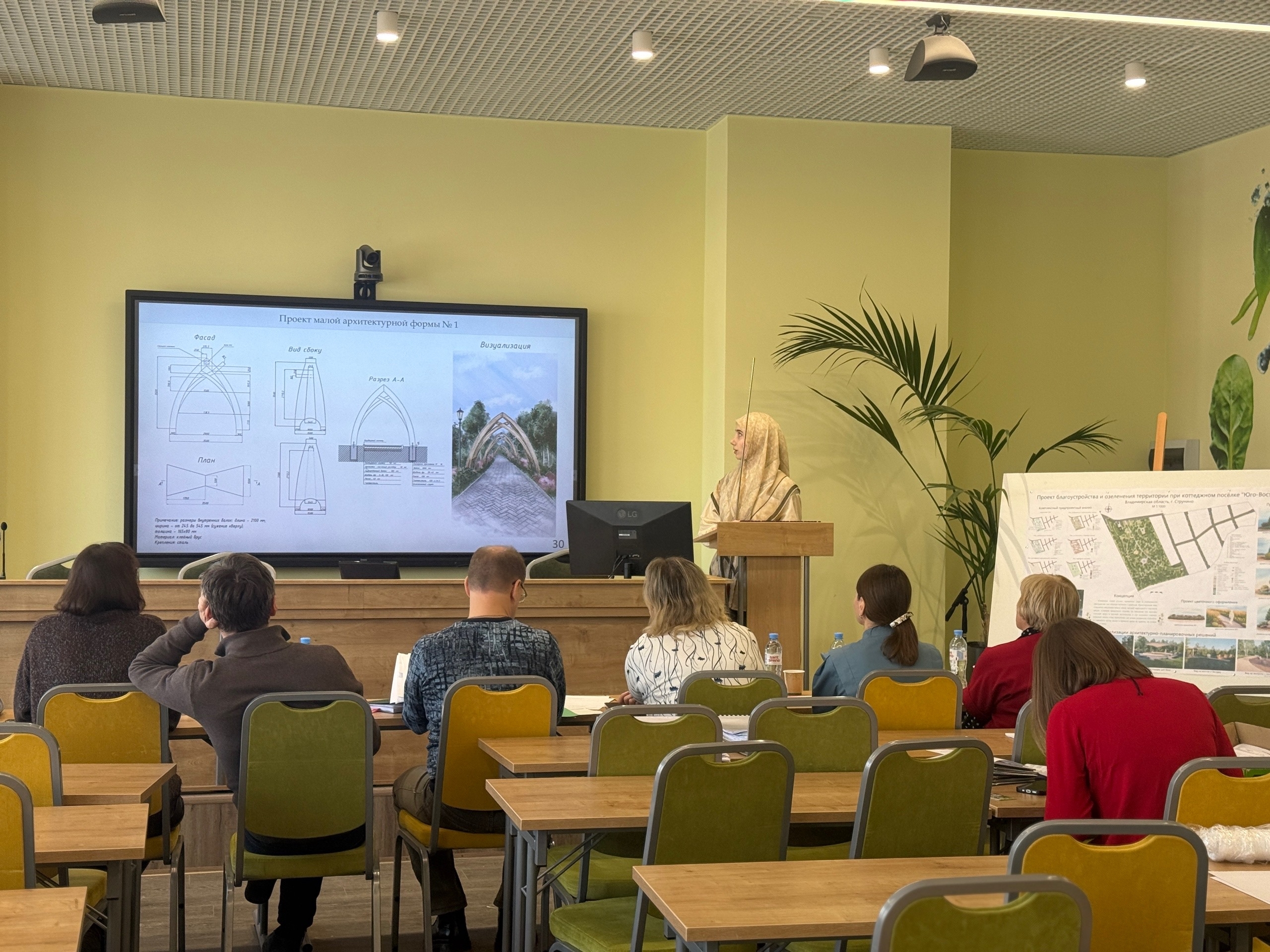 25 Март / 2026Выпускники представили интересные проработанные проекты благоустройства и озеленения объектов ландшафтной архитектуры, а также проекты реконструкции ОЛА. В своих работах будущие специалисты использовали весь арсенал знаний, умений и навыков, приобретенных за время обучения, показав способность решать сложные профессиональные задачи. Комплекты чертежей и демонстрационный материал (плакаты) своих проектов студенты выполнили в разных графических программах: AutoCAD, SketchUP, Procreate, Photoshop, Lumion и др.