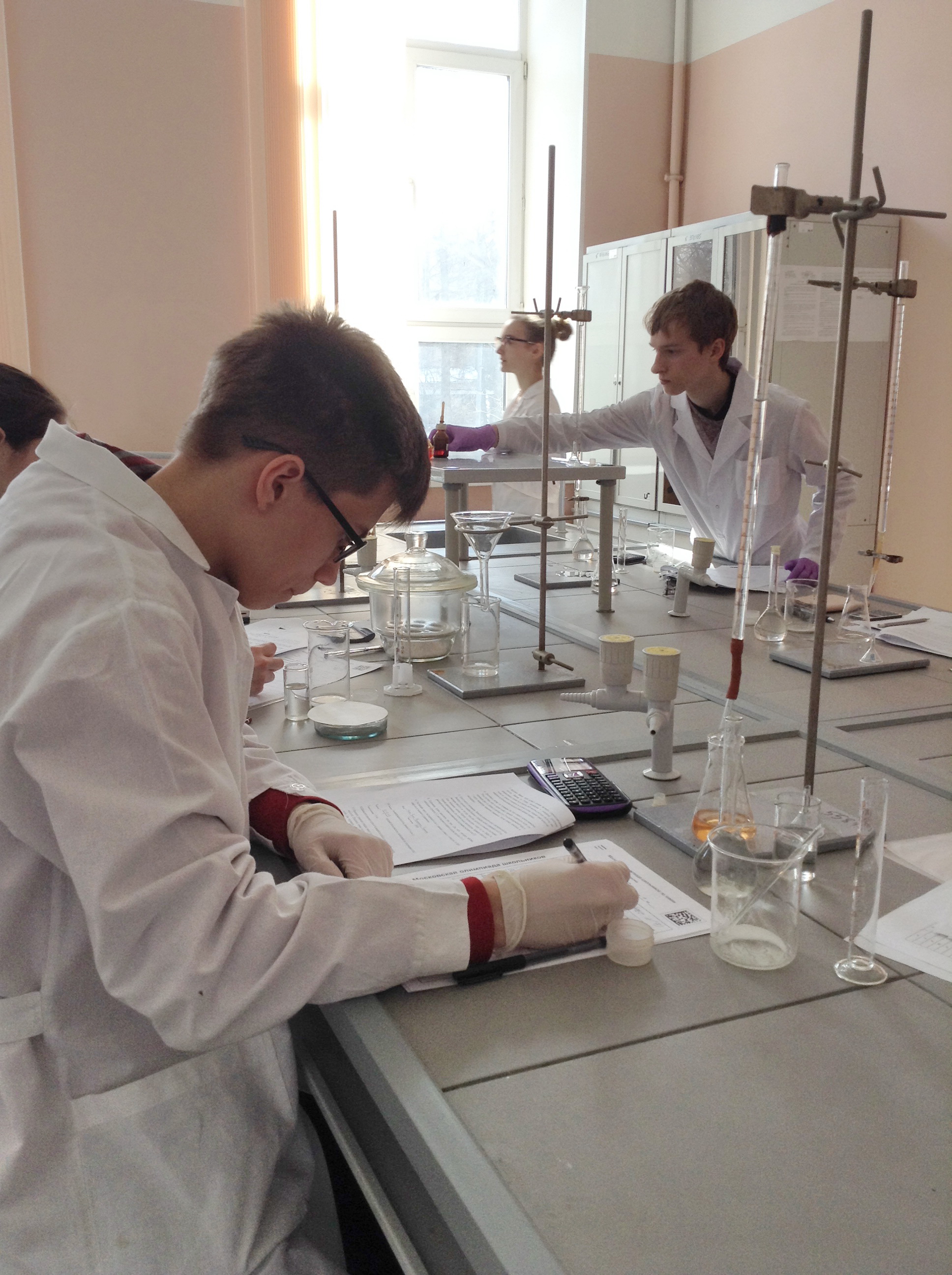 Закончив экспериментальную часть работы и произведя необходимые расчеты, олимпийцы проходили собеседование с преподавателем, в ходе которого они обсуждали оценку за подготовленный заранее реферат и корректность результатов осуществленных анализов. В завершение четырехчасовой работы участники олимпиады узнали количество набранных ими баллов. 35% школьников набрали максимально возможные 15 баллов, что свидетельствует о высоком общем уровне знаний по химии.