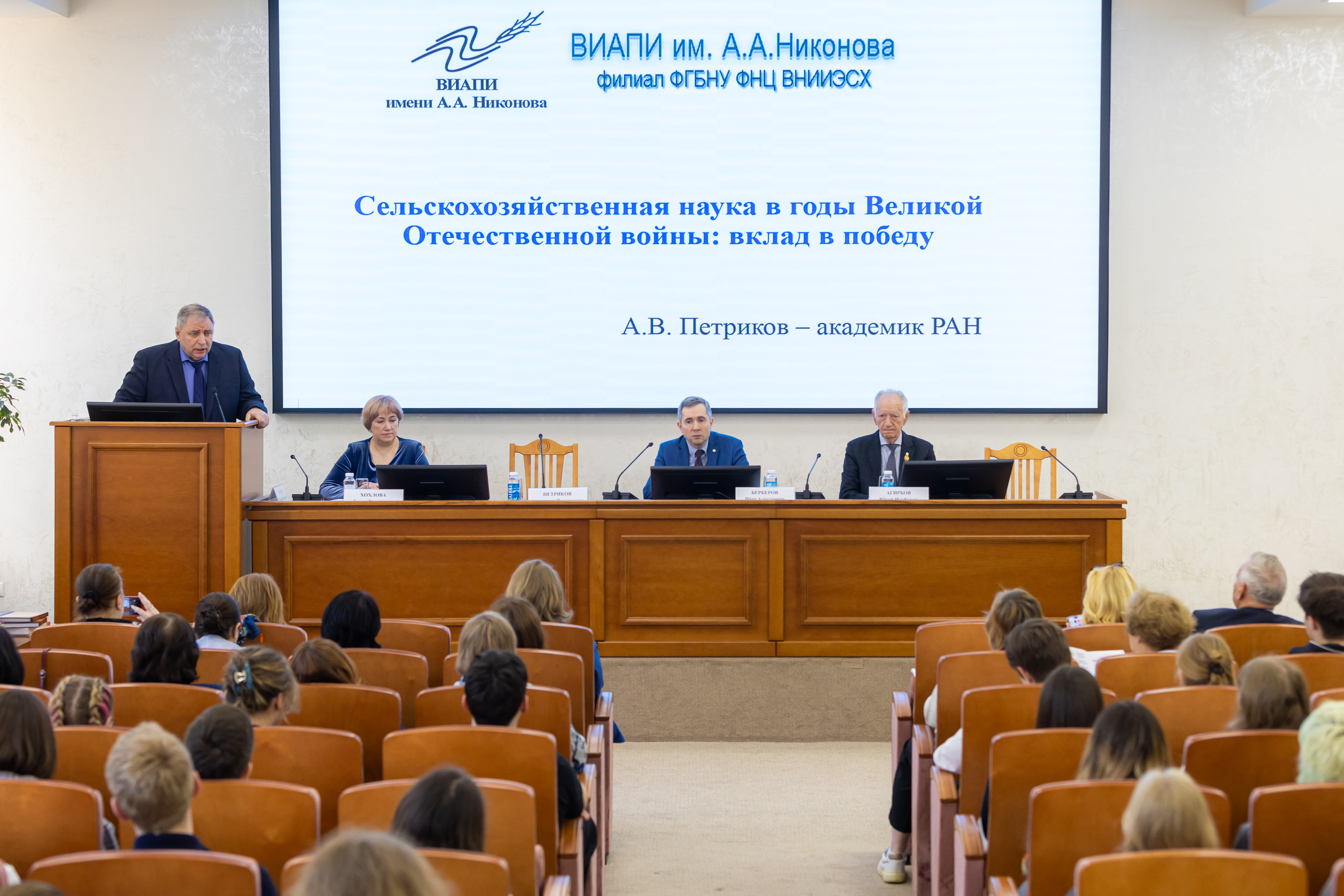 17 Май / 2025Во второй день конференции, посвященной 80-летию Победы в Великой Отечественной войне, состоялось выступление почетного участника конференции, академика РАН, руководителя Всероссийского института аграрных проблем и информатики им. А.А. Никонова филиала ФГБНУ ФНЦ ВНИИЭСХ, доктора экономических наук, профессора Александра Васильевича Петрикова с докладом на тему «Сельскохозяйственная наука в годы Великой Отечественной войны: вклад в Победу».