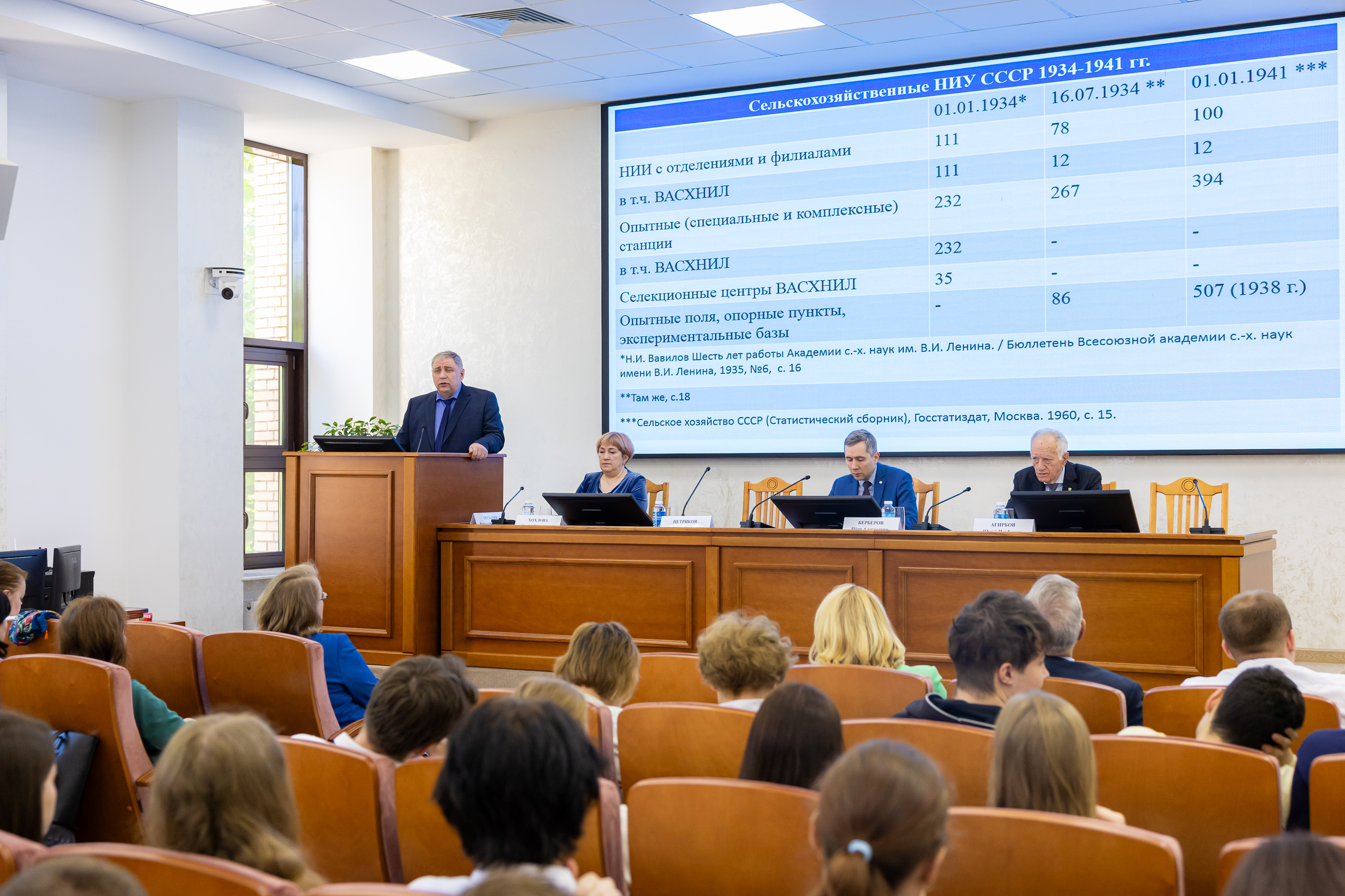 Докладчик в своем выступлении подробно осветил, обобщил данные по основным направлениям работы аграрной науки в годы Великой Отечественной войны, а также указал на достижения и решения аграрной науки, которые помогли гражданам СССР обеспечить Победу в тяжелейшей войне. Он также отметил тех выдающихся ученых и организаторов аграрной науки, которые сделали это возможным.