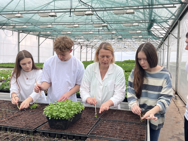 02 Апрель / 2026Гости мероприятия познакомились с современными технологиями выращивания овощных культур в условиях защищенного грунта, а также в рассадном отделении освоили ключевые этапы производства рассады. Школьники самостоятельно попробовали свои силы в технике посева семян и пикировки сеянцев. Мастер-класс прошел в живой познавательной атмосфере: ребята не только приобрели ценные агротехнические навыки, но и смогли почувствовать себя настоящими специалистами в области овощеводства.