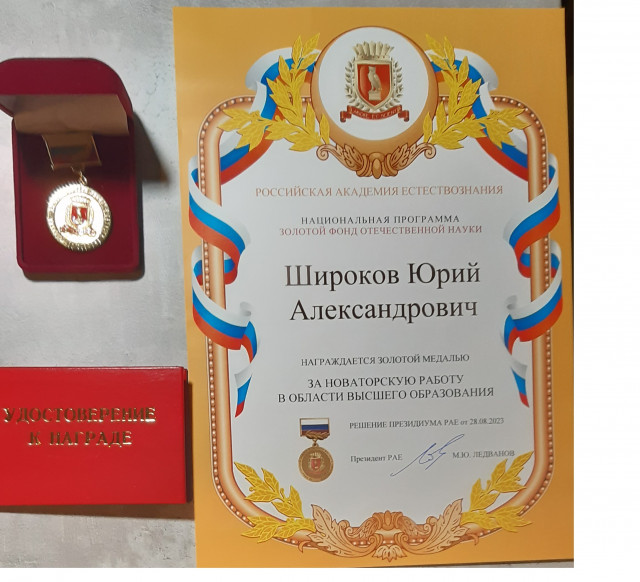 Профессор кафедры Техносферной безопасности Широков Юрий Александрович награжден Золотой медалью «За новаторскую работу в области высшего образования».