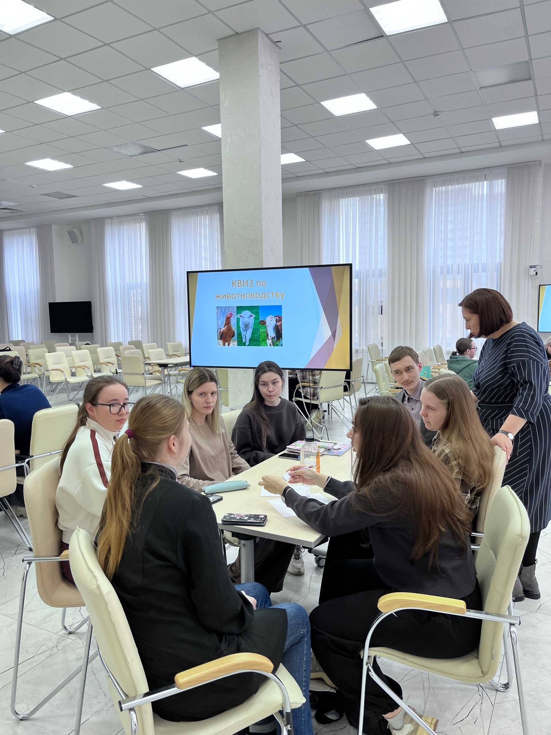 14 апреля в «Точке кипения» РГАУ-МСХА имени К.А. Тимирязева состоялась интеллектуальная игра «КВИЗ-ЧГК», посвящённая животноводству. Мероприятие объединило студентов института зоотехнии и биологии, которые продемонстрировали свои профессиональные знания, эрудицию и умение работать в команде.